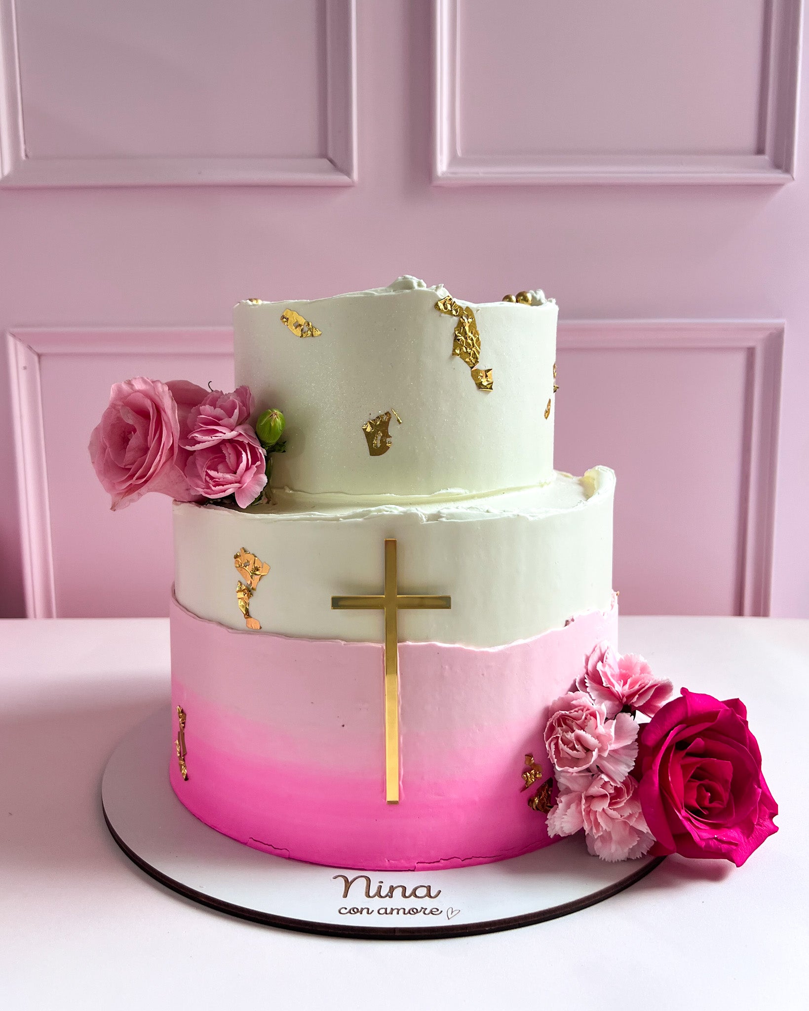 La torta de la foto es de 30-40-50 porciones. Para que tu torta sea de dos pisos, debe ser de 25-30 porciones en adelante